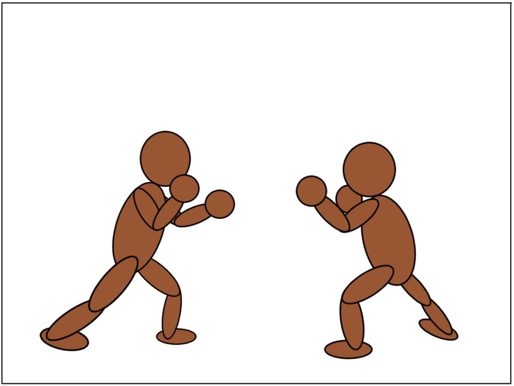 この時にベタ足のカカト重心だったら、つま先に重心を移してから足を上げるという「2挙動」になってしまって受けが間に合わない事があるので、向かい合って集中している時はつま先重心で備えていて下さい。