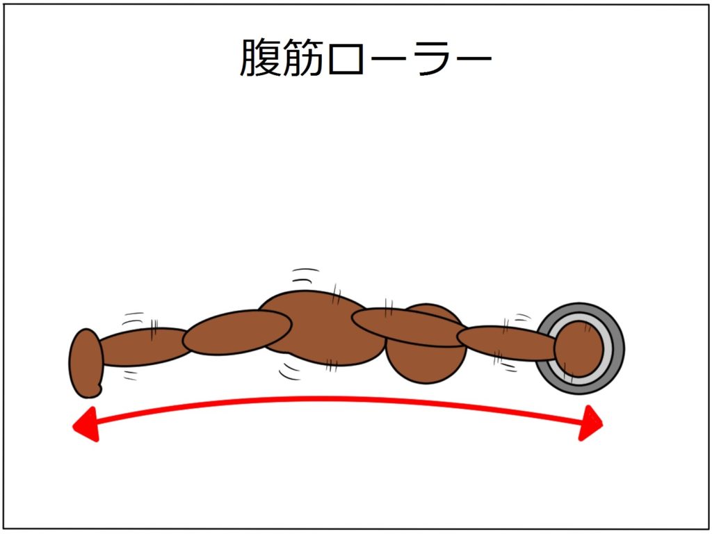 上記のイラストみたいに「腹筋ローラー」を使うと下腹部が鍛えられるので、腹筋ローラーはオススメです。