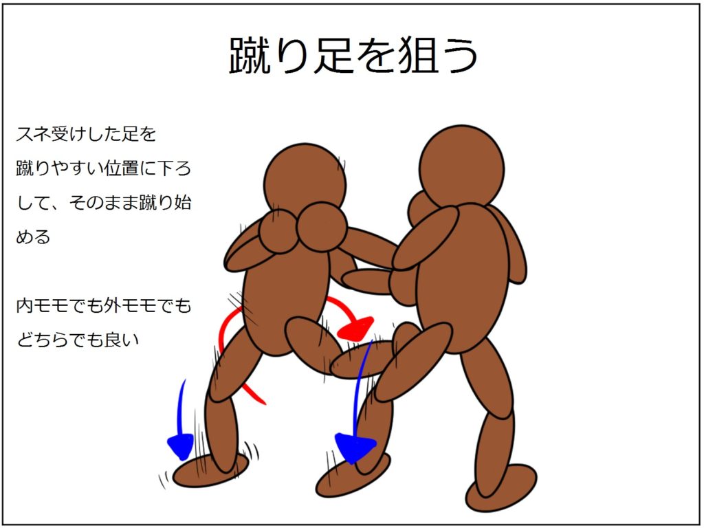 下段蹴りを普通に蹴ってもスネ受けされるか間合いを潰されるかして、まともに当てられるのはまれですよね。