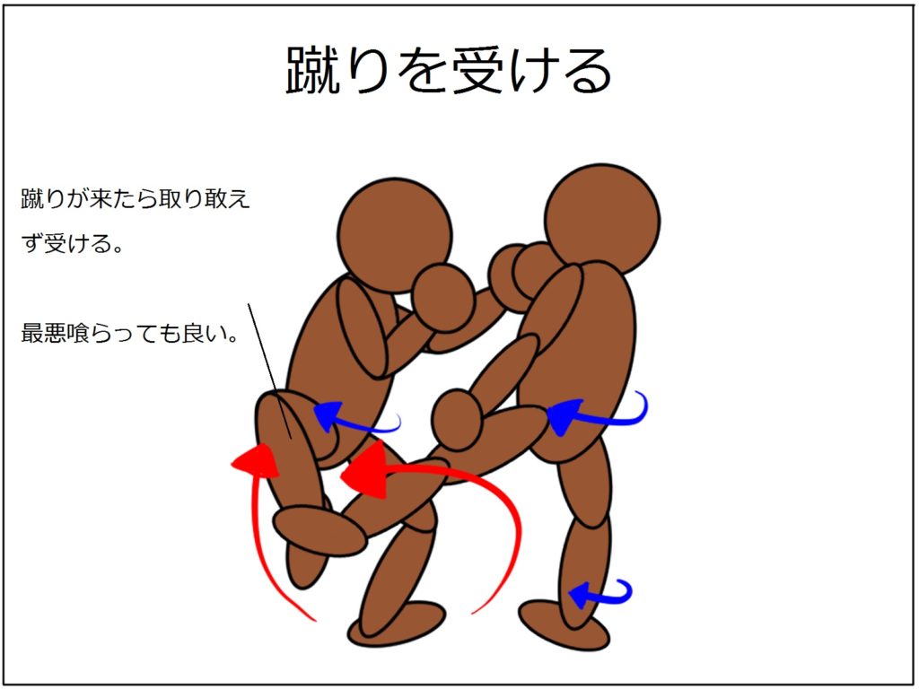 組手の最中、相手が蹴りを蹴ってきたとします。