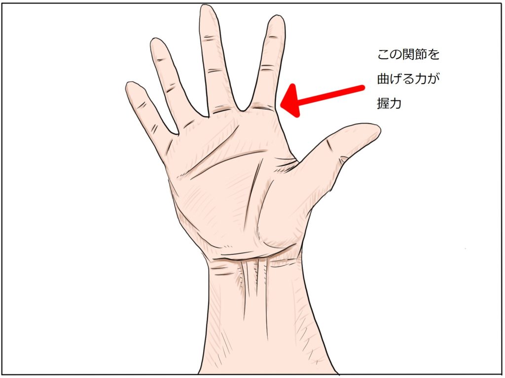 握力とは読んで字の如く「握る力」なんですが、拳のどの部分を曲げる(握る)力なのかを説明します。