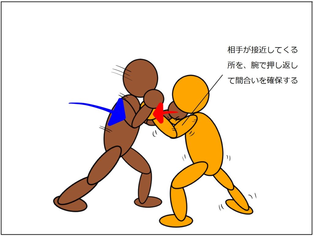そして何だかんだで接近して攻防を繰り広げている時、腕で間合いが取れない人はガードが下がってしまうのです。